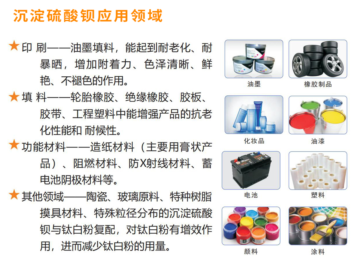 專用改性BaSO4多以氯化鋇等可溶性鋇鹽為原料,表面經(jīng)過(guò)表面活性劑包覆處理后的產(chǎn)品。專用改性BaSO4產(chǎn)品的特點(diǎn)主要是高白度、良好分散性和粒徑小且均勻,有利于專用化改性。專用改性BaSO4表面包覆一層有機(jī)修飾層,使其具有了疏水親油表面特性,能夠與有機(jī)物很好的相容。降低顆粒的表面能,減少顆粒在生產(chǎn)和干燥過(guò)程中的二次團(tuán)聚,更適合生產(chǎn)超微細(xì)產(chǎn)品。改性硫酸鋇具有普通沉淀硫酸鋇的一般性質(zhì)。此外,可作為特殊功能型填料,適用于粉末涂料、乳膠漆、油墨、塑料等制品中,有較強(qiáng)的親和性和抗射線性能。用作有色顏料填充劑時(shí),能使顏料色澤鮮明、光亮。