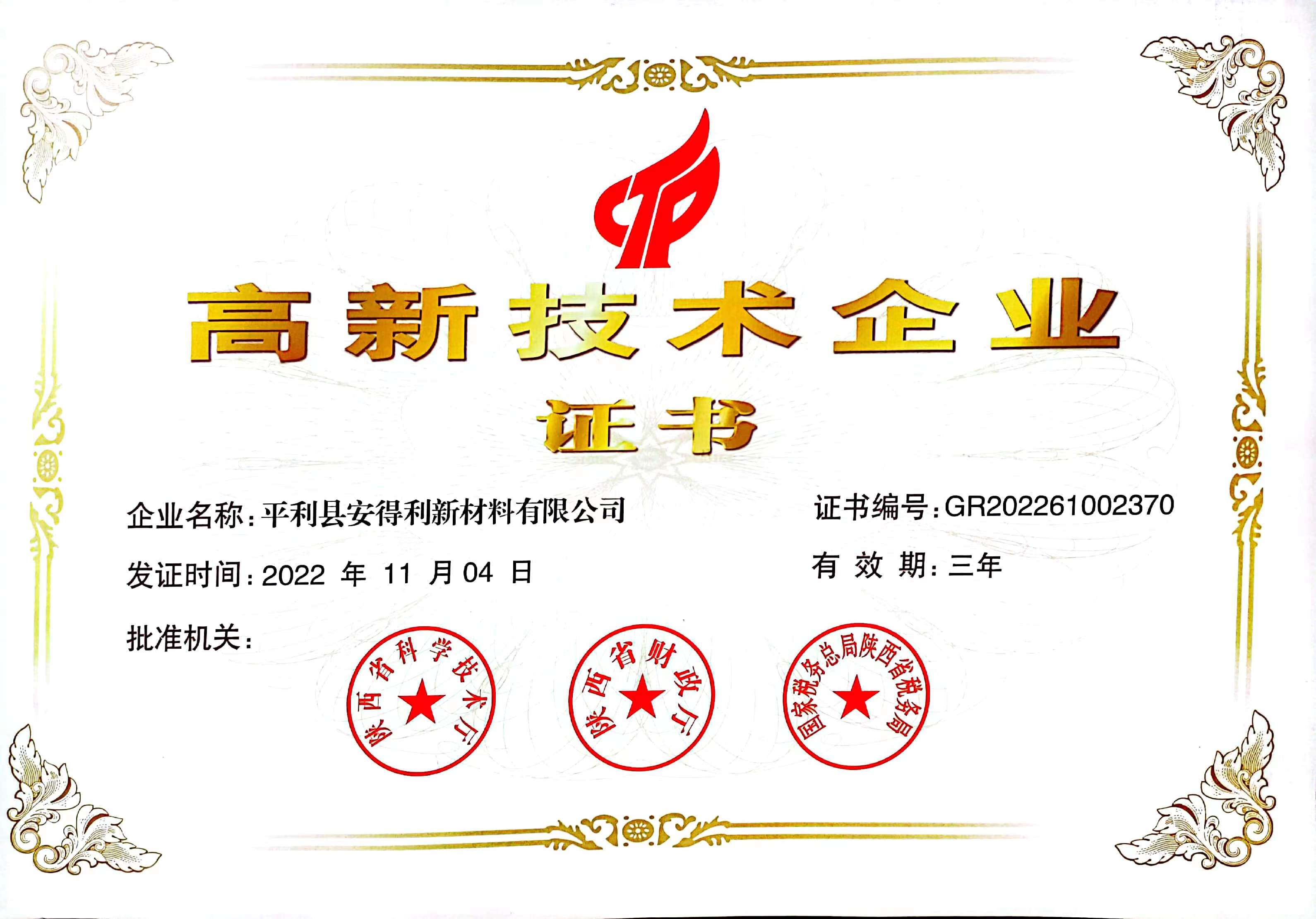 高新技術(shù)企業(yè)證書(shū)