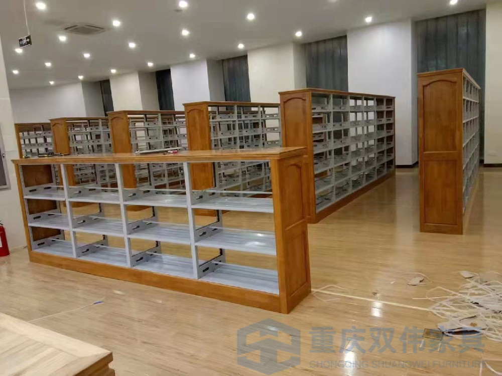 雙柱雙面木護板書架